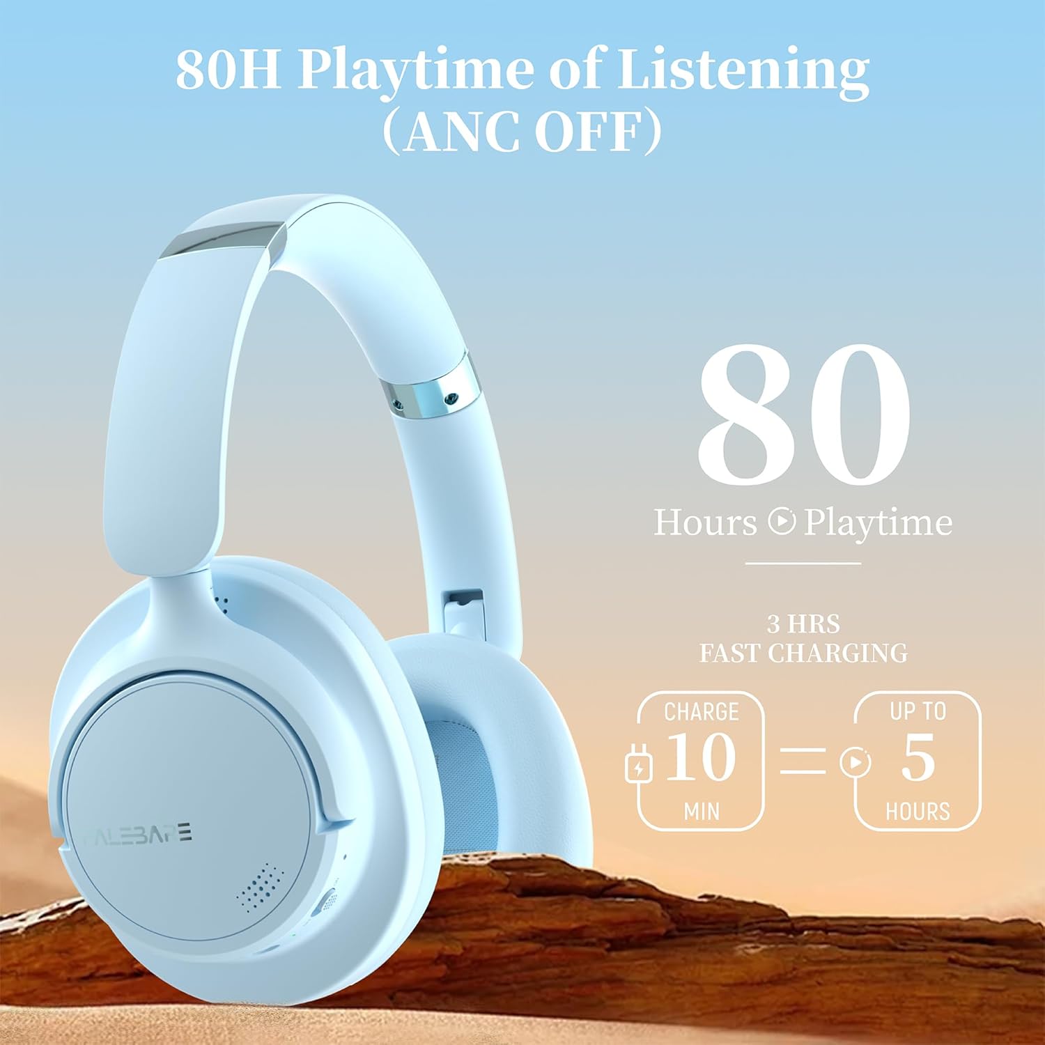 - Remarkable Battery Life: Up to 80 hours of playback (ANC OFF) or 60 hours (ANC ON), with a quick 10-minute charge providing 5 hours of listening time.