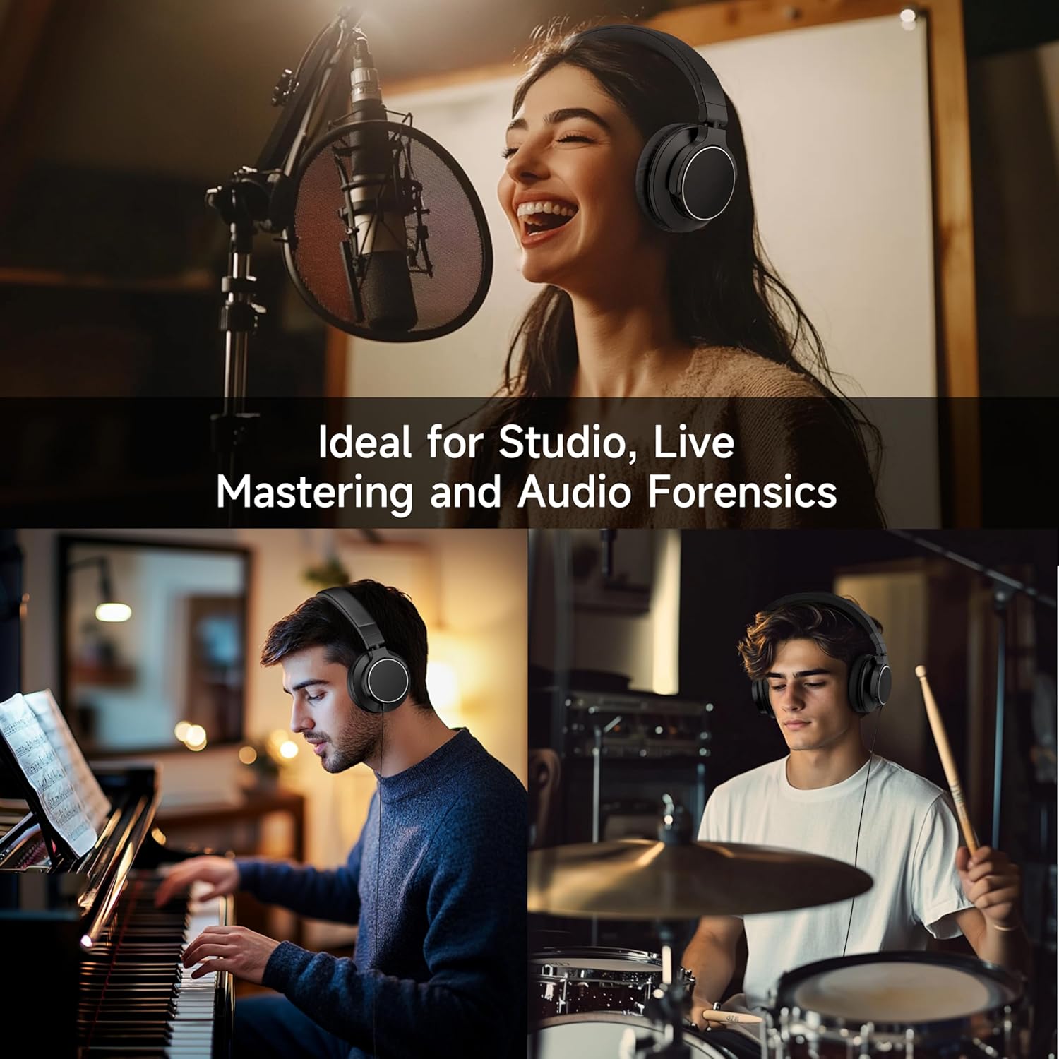 Specification: Over Ear Bluetooth Headphones, Studio Monitor & Mixing DJ Headphones Wireless with 50mm Drivers and 1/4 to 3.5mm Wired Audio Jack for Guitar AMP Recording Podcast Piano, 100H Playtime, Black