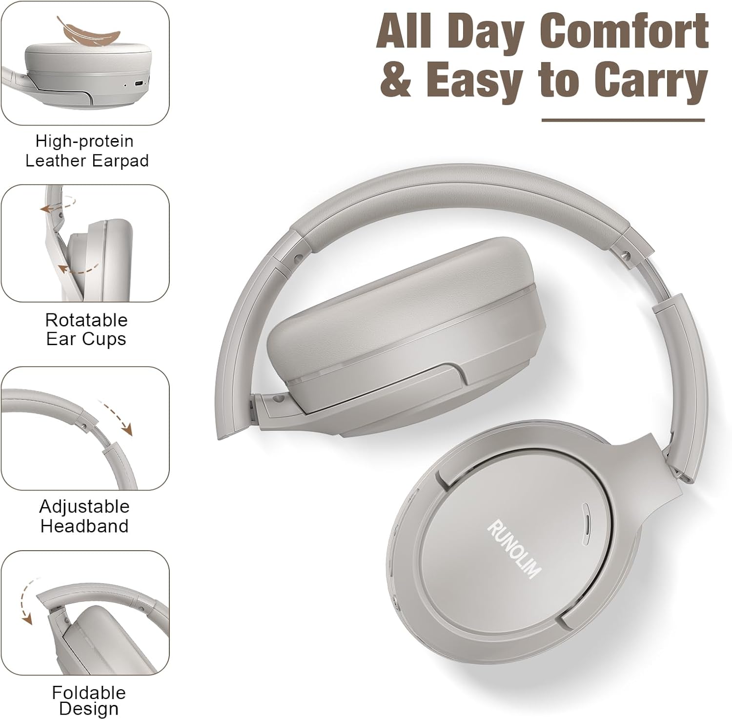 RUNOLIM Hybrid Active Noise Cancelling Headphones, 70H Playtime, Built-in Microphone, Bluetooth Wireless Over Ear Foldable Headphones with HiFi Audio, Home Travel Office