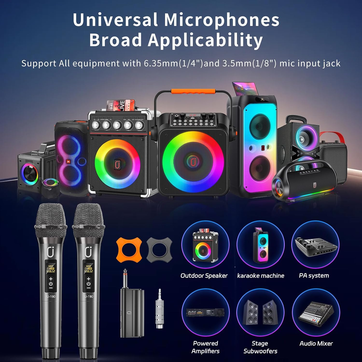 The dual handheld wireless microphones offer a high-performance audio experience, making them ideal for karaoke, speeches, and other events. Their user-friendly design and superior sound quality set them apart as a top choice for both amateur and professional uses.