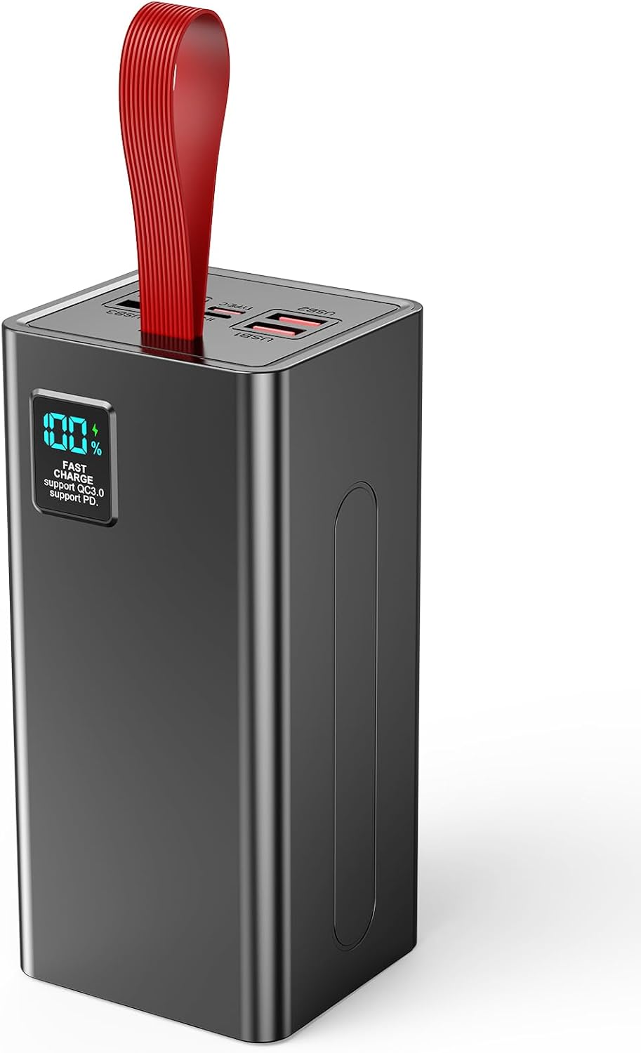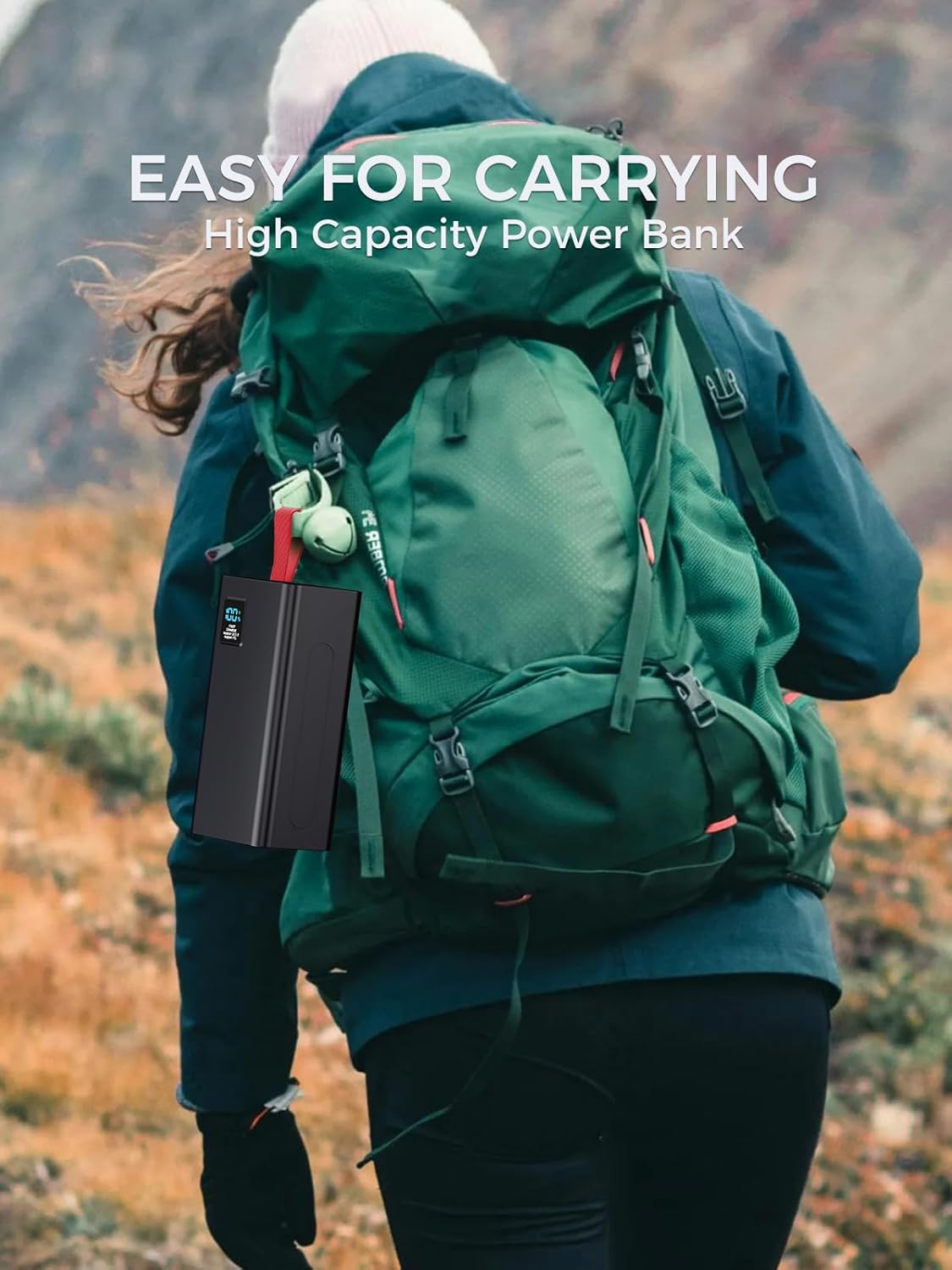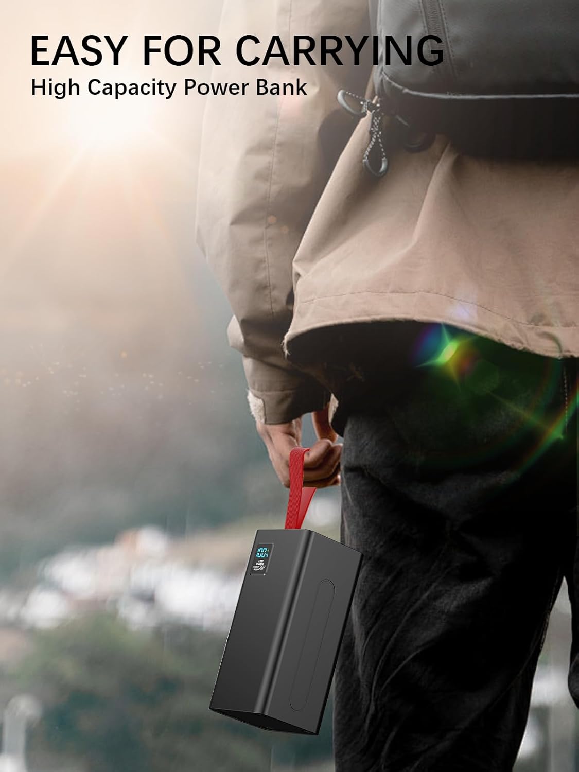 The power bank features a soft lanyard for easy carrying, and an LED display that accurately shows the remaining power percentage. This ensures you’re always aware of when to recharge.