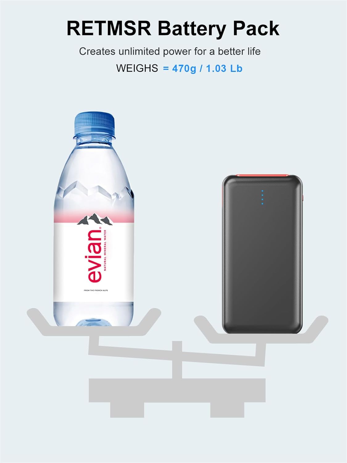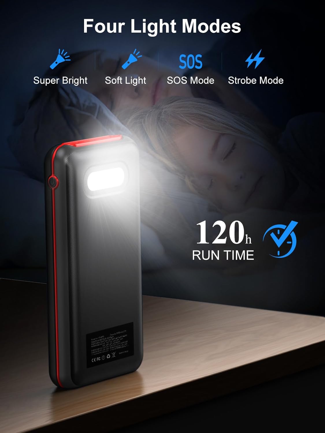 The power bank has a robust construction with an anti-pressure and scratch-resistant shell, ensuring longevity. Its compact size (6.77 x 3.43 x 1 inch) and lightweight design (1.03 lb) make it easy to carry in your palm or bag.