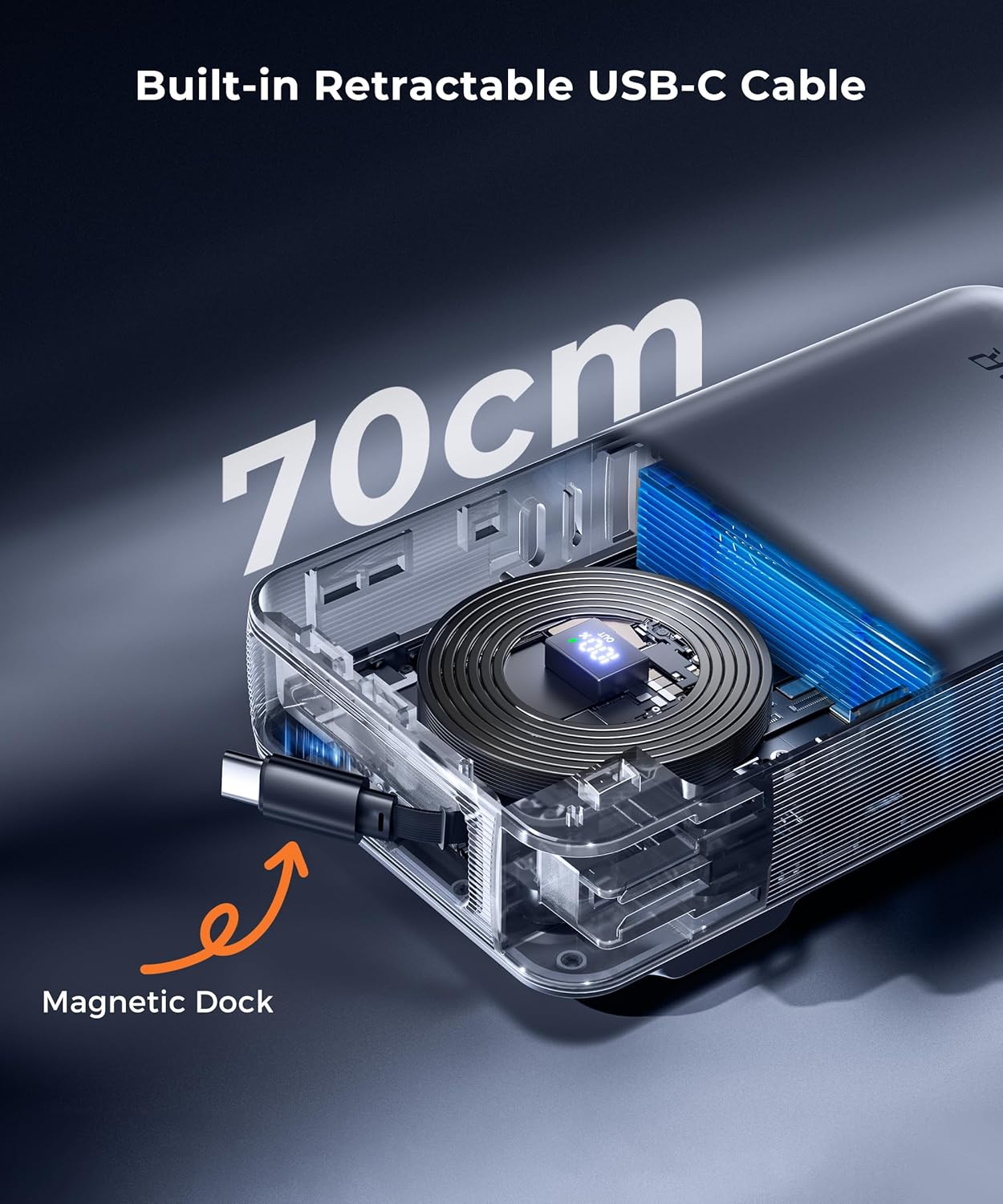 This power bank comes with 17-layer protection and is backed by global safety certifications such as UL, FCC, and TUV. It guarantees over 600 charge cycles without battery degradation. The durable shell adds extra protection against scratches and impacts.