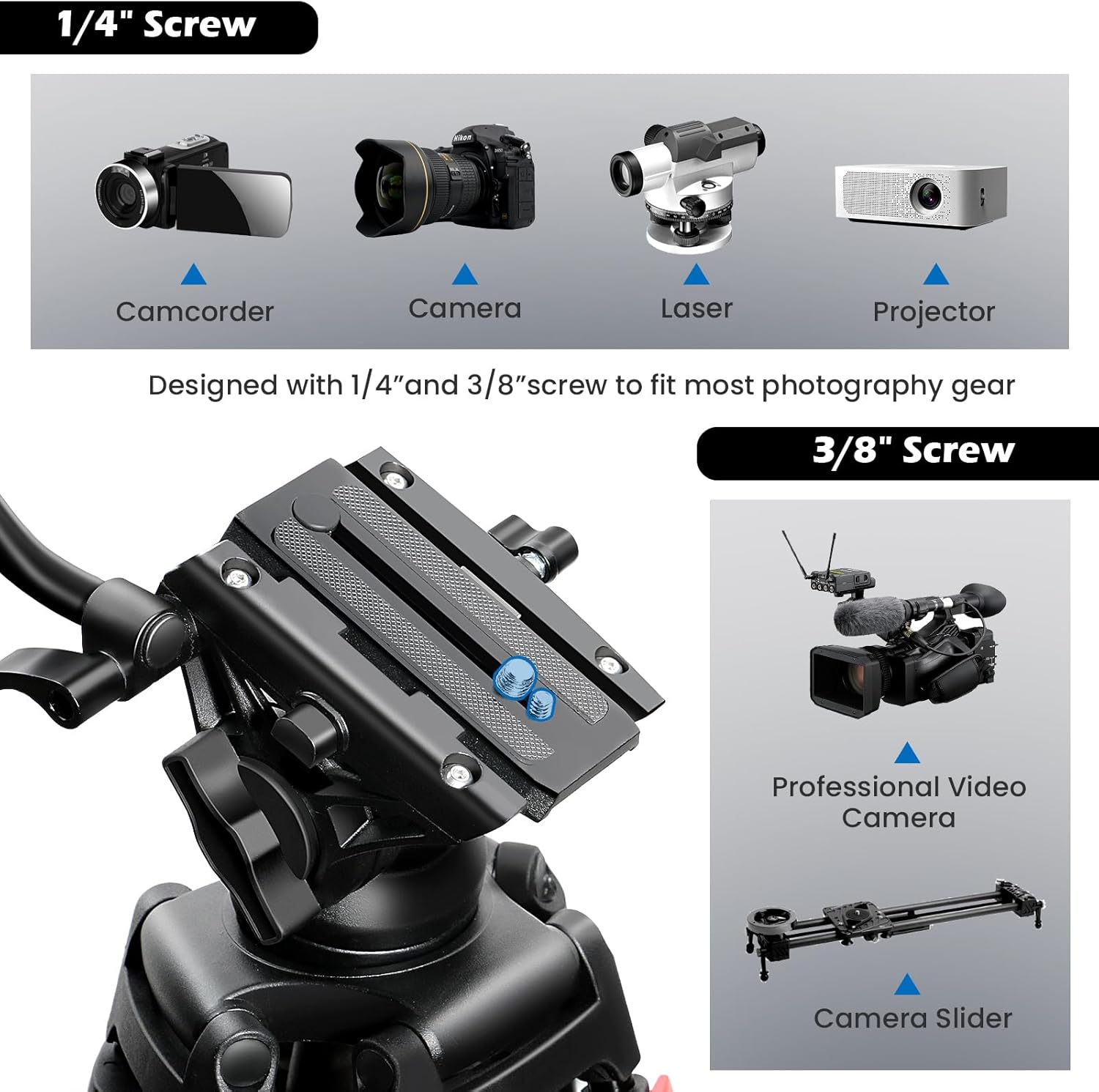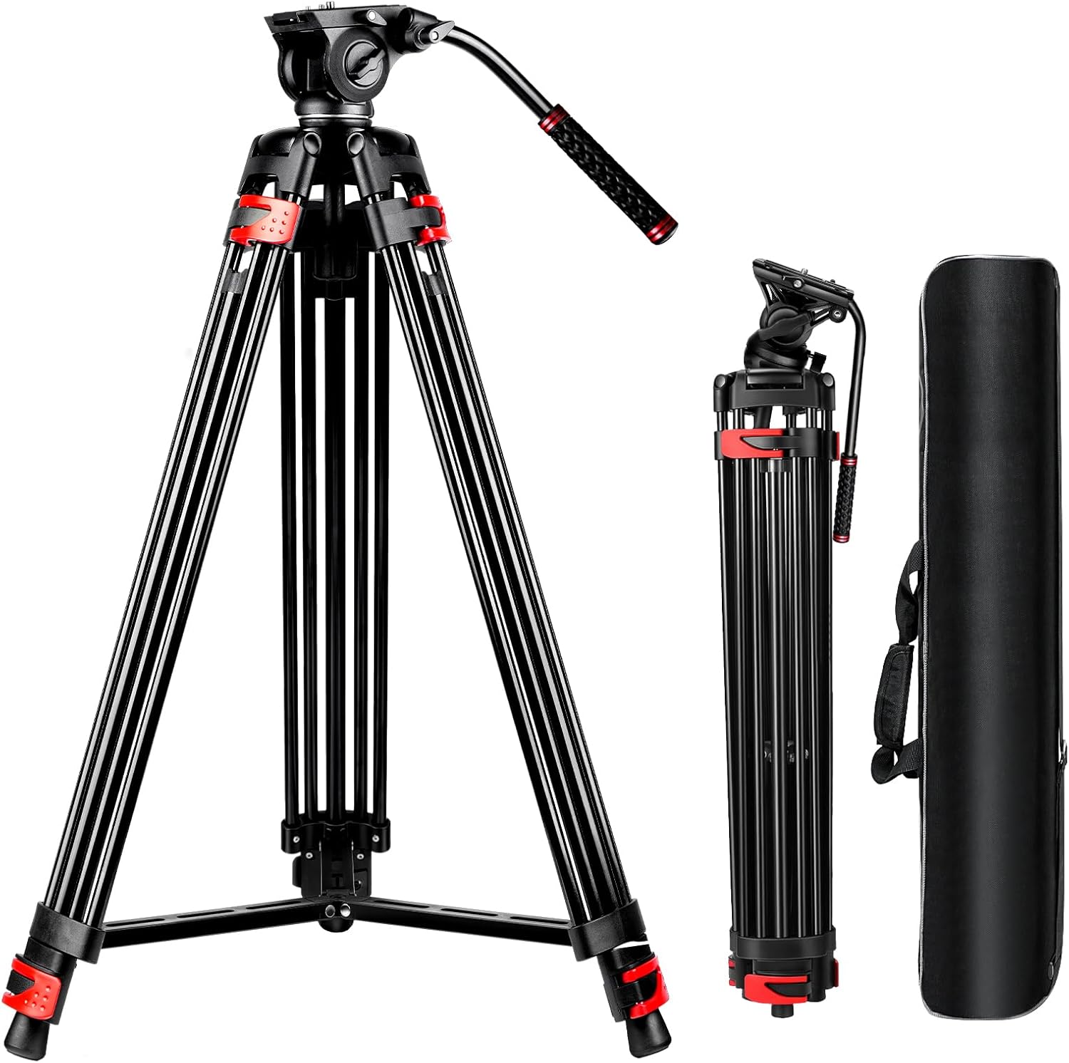 The Professional Fluid Head Video Tripod is designed for photographers and videographers seeking stability and versatility. Crafted from a magnesium-aluminum alloy, this tripod combines strength and lightweight portability, weighing only 9.8 pounds (4.45 kg) while supporting up to 33 pounds (15 kg).