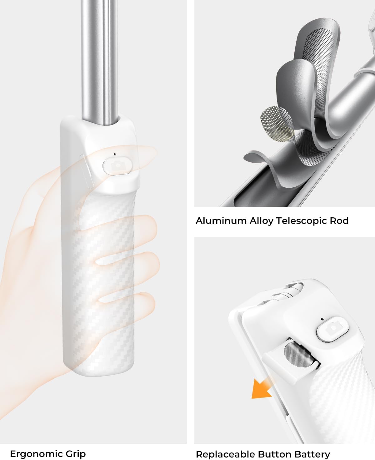 Selfie Stick with Wireless Remote – Portable Selfie Stick for iPhone & Android, Lightweight Foldable Travel Phone Holder for Cell Phone, for Photograph, Video Recording, Streaming, White