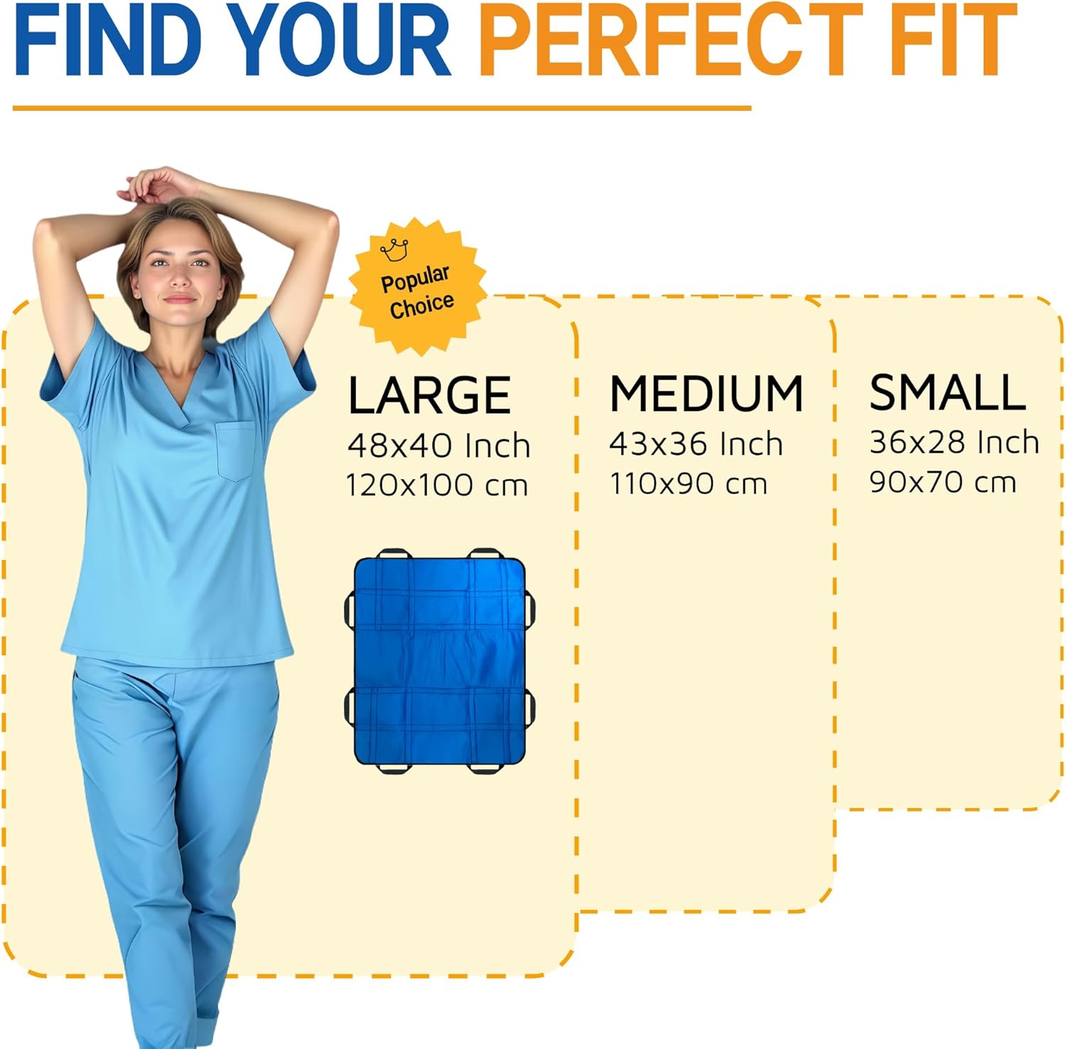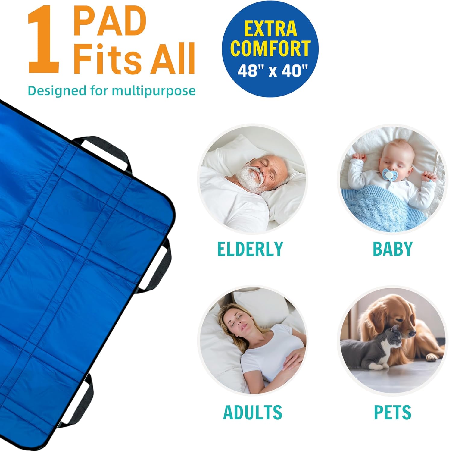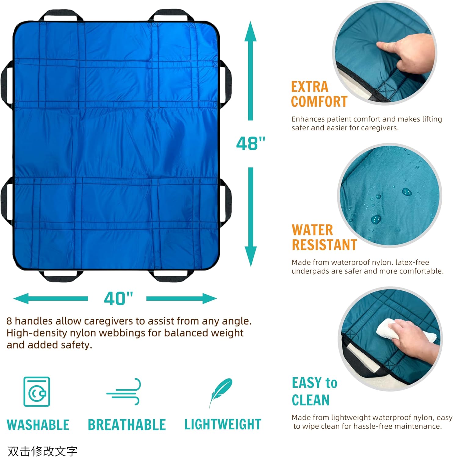 Upgraded 3-Layer Comfort Positioning Bed Pad with Handles 48″ x 40″ Washable Waterproof Transfer Board for Turning Inconvenience Care Transfer Sheet (Lake Blue)