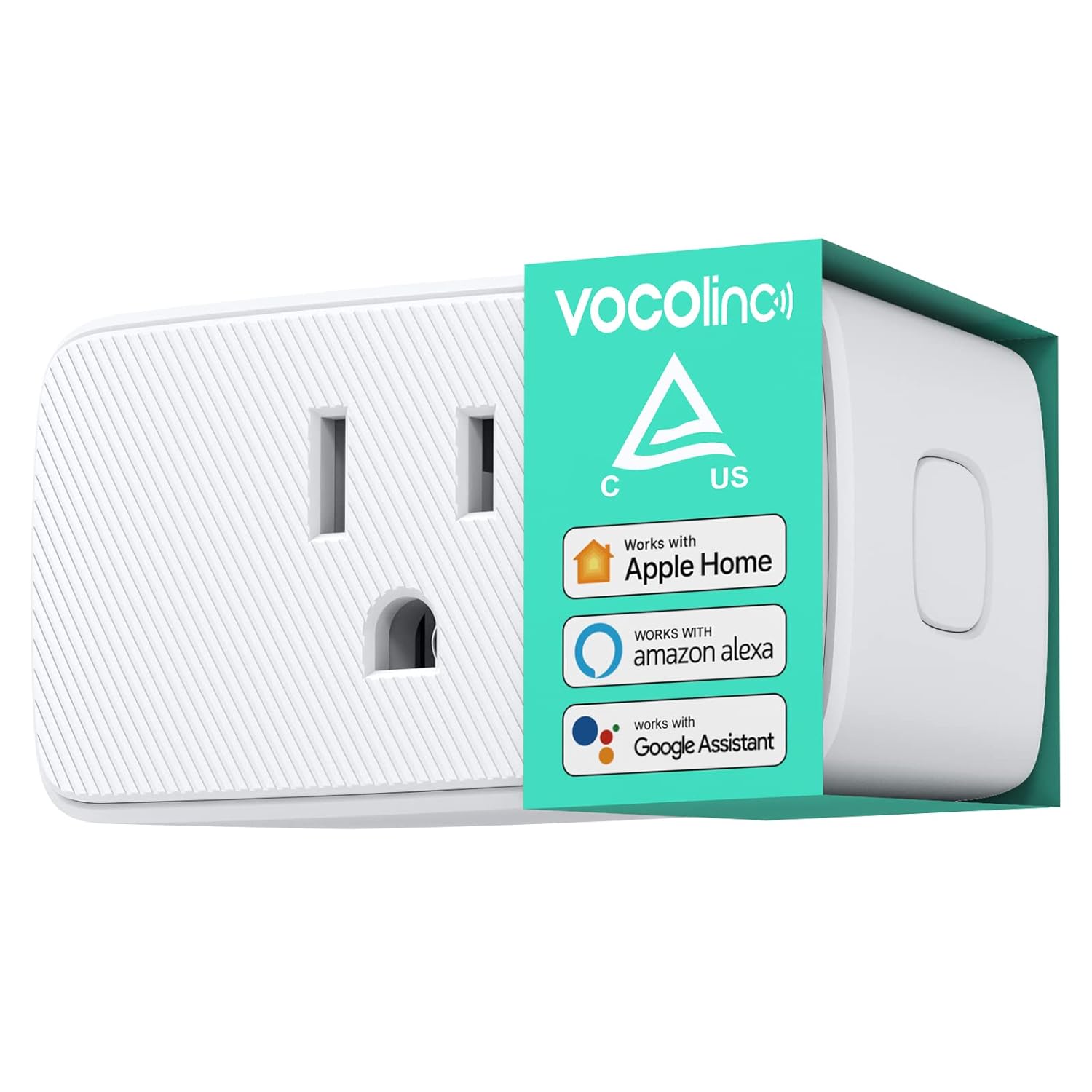 The VOCOlinc Smart WiFi Plug is designed to work seamlessly with Apple Home, Alexa, and Google Assistant, offering convenient hands-free operation for your smart home devices.