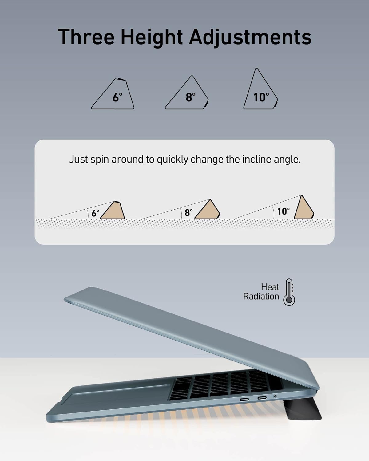 Three Ergonomic Angles: Adjustable incline levels of 6°, 8°, and 10° provide optimal heights for reading and typing, reducing posture-related issues like muscle strain and repetitive injury.