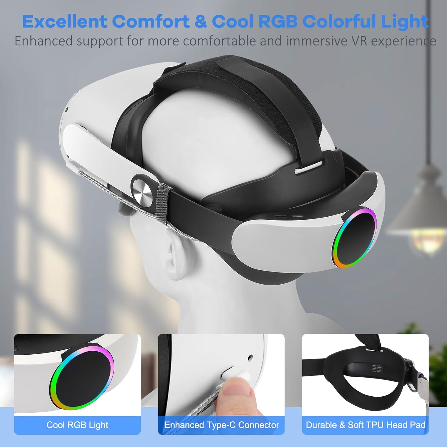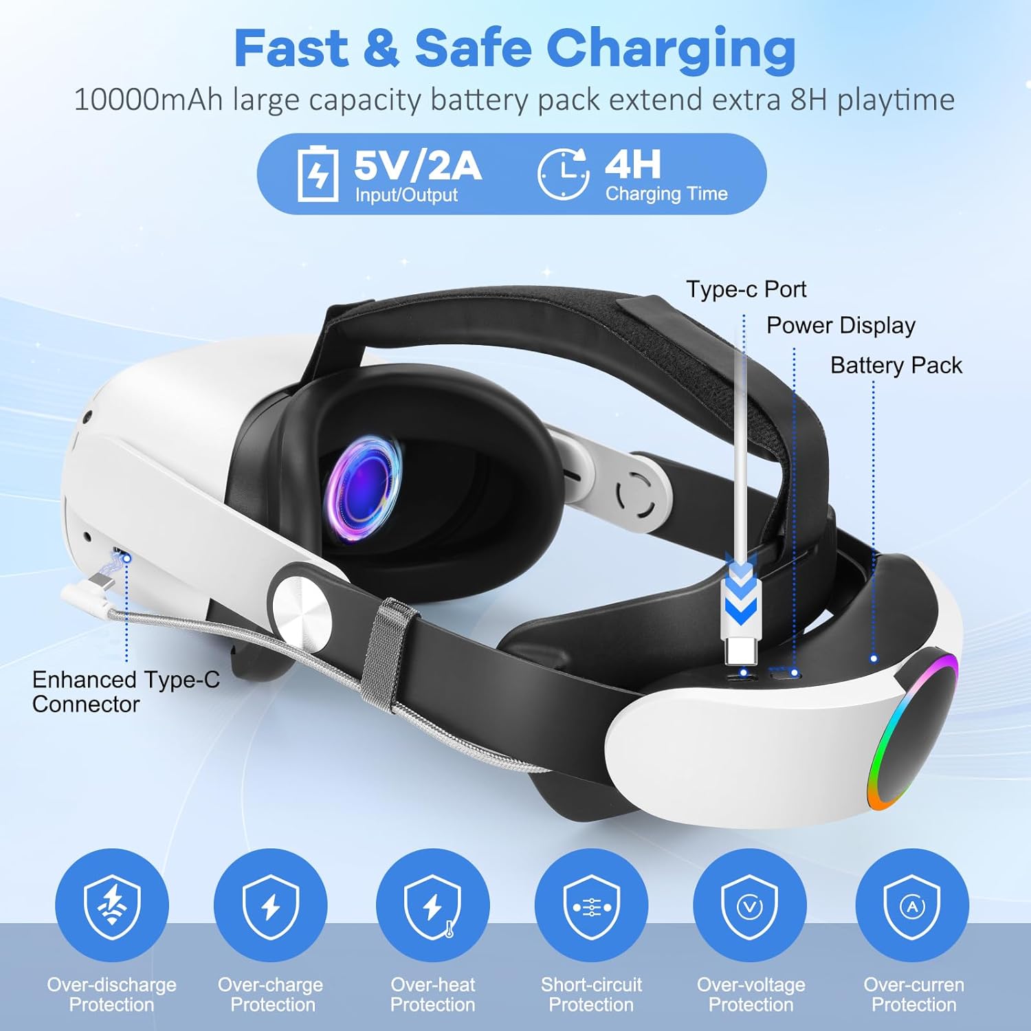 Specification: Hurra Head Strap with Battery for Oculus Quest 2, 10000mAh Fast Charging Battery Pack Extend 8H Playtime, Adjustable Elite Strap Replacement with RGB Light Enhanced Comfort Support & Balance in VR