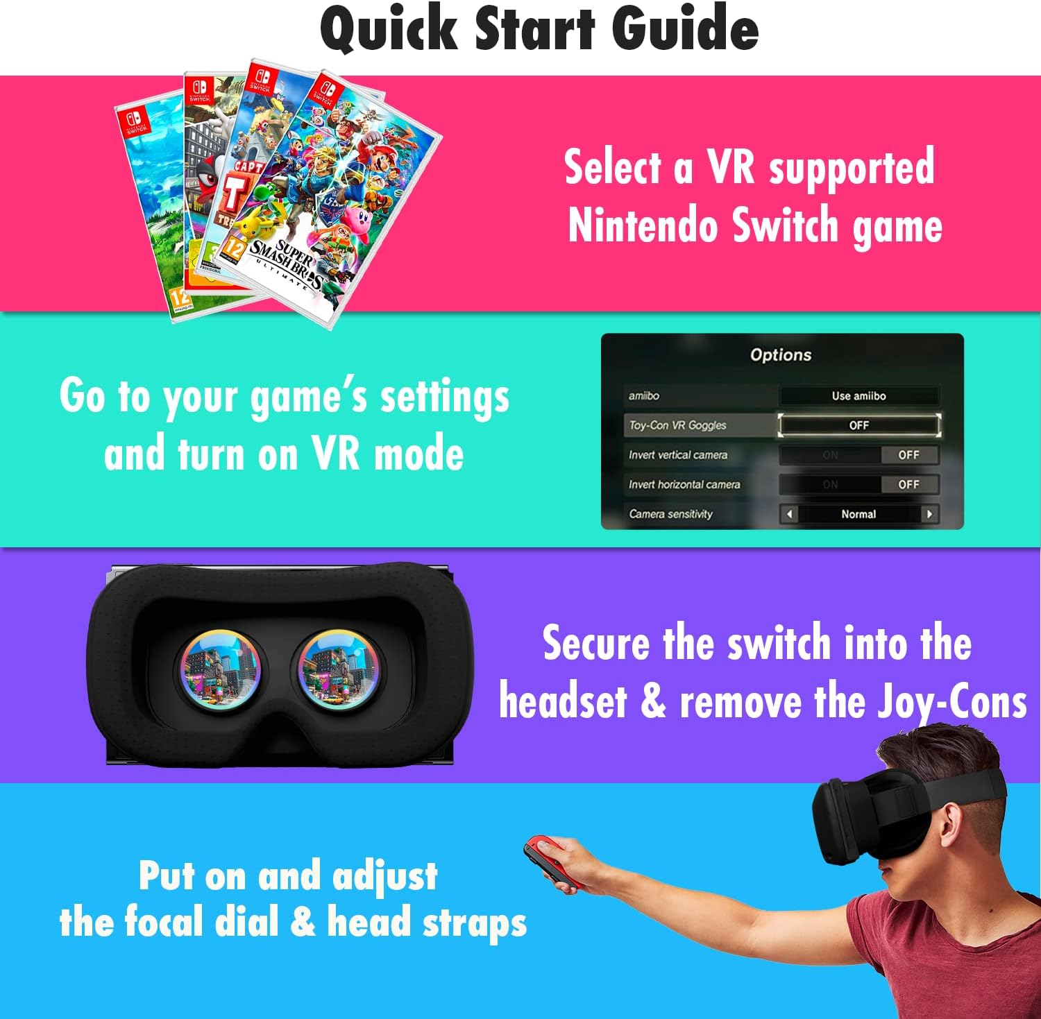 Designed by Orzly in London VR headset with head strap and adjustable lens made for Nintendo Switch