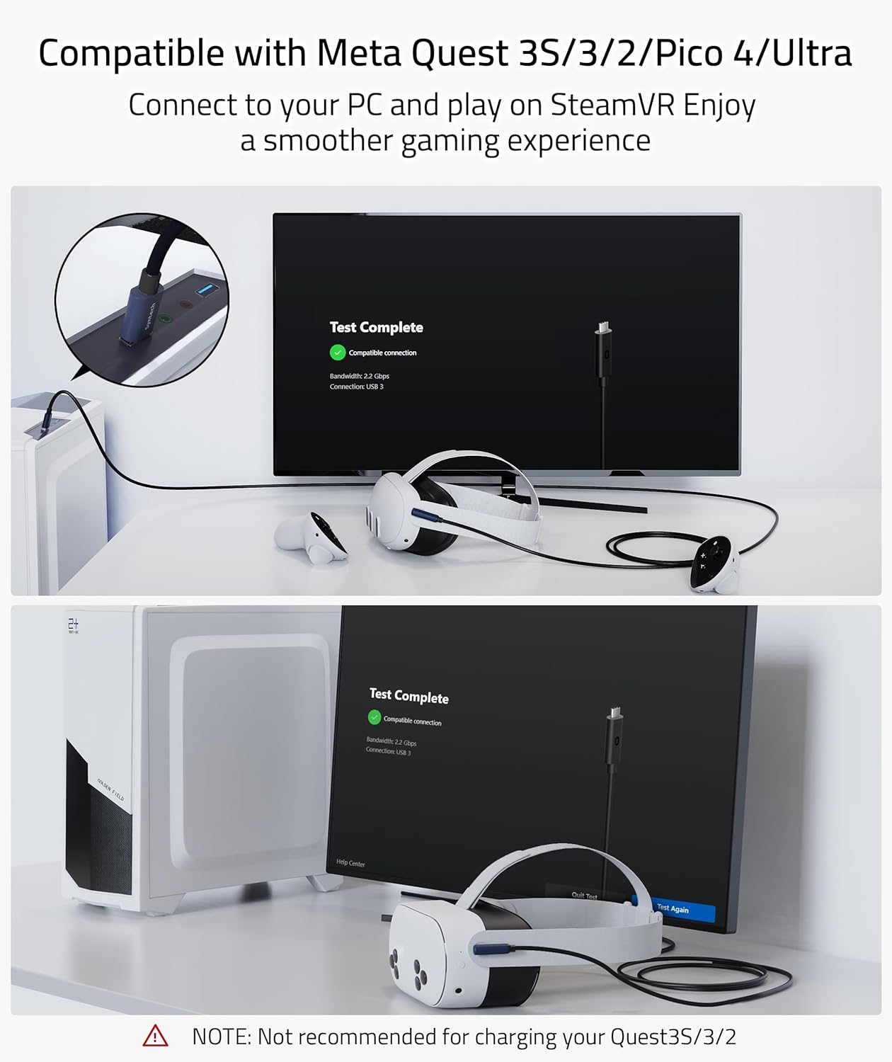 This cable is perfectly compatible with Quest3 and Quest2 headsets, enabling seamless connectivity for an enhanced VR experience.