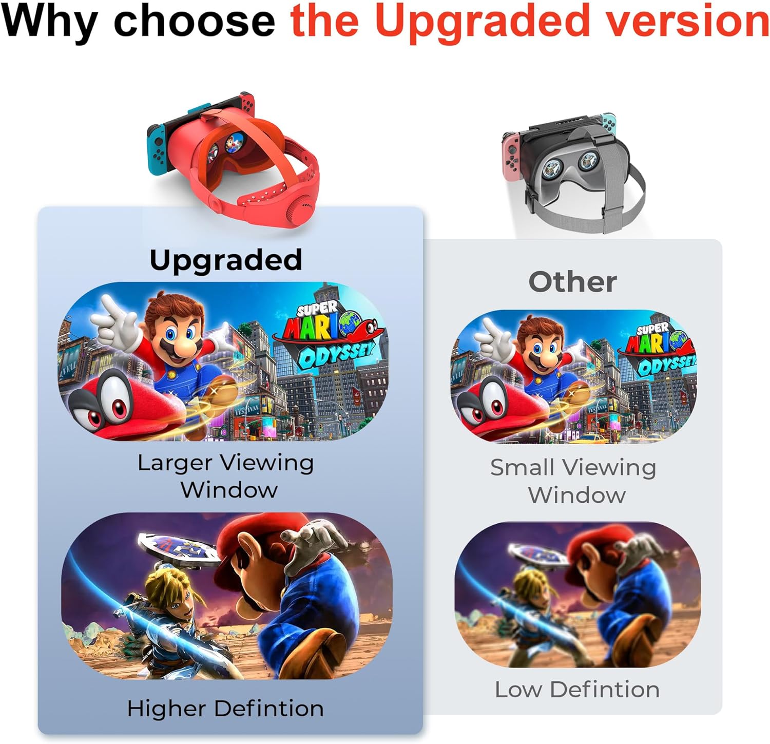 Specification: Upgraded VR Headset for Nintendo Switch & Switch OLED Model, Switch VR Games Glasses with Adjustable HD Lenses and Head Strap with Rotary Button, Labo VR for Switch Accessory(Orange&Blue)