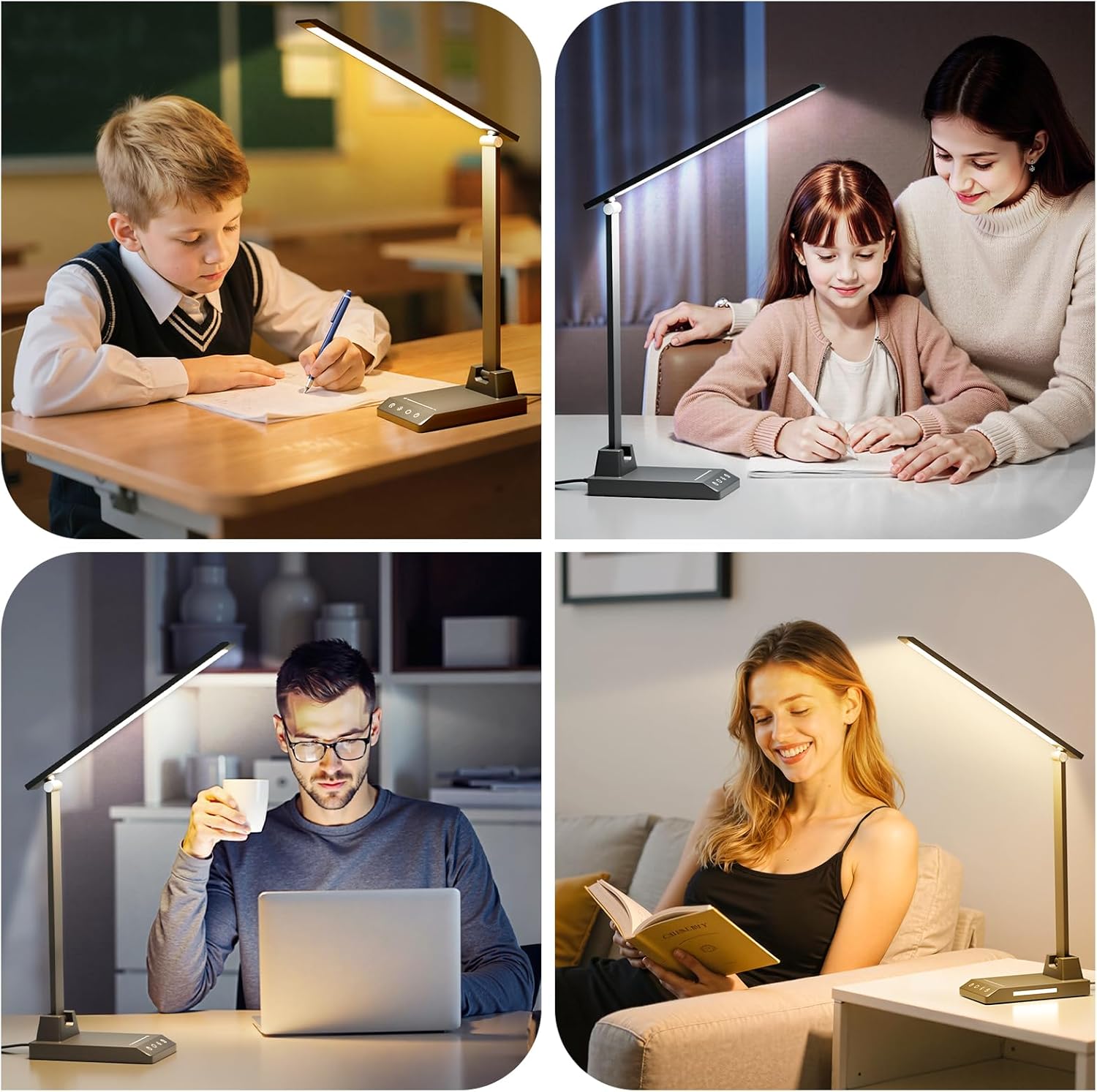 This versatile desk lamp offers a total of 25 lighting combinations, providing 5 color temperatures ranging from warm (3000K) to bright (6000K) and 5 brightness levels from 12% to 100%. The user-friendly touch button controls make it a breeze to adjust light settings, adapting seamlessly to your needs. With a Color Rendering Index (CRI) of over 80+ and a standard deviation of color matching (SDCM) of less than 5, this lamp ensures natural and vibrant light. Its flicker-free and soft illumination is designed to minimize eye strain, making it an excellent choice for extended study or work sessions.