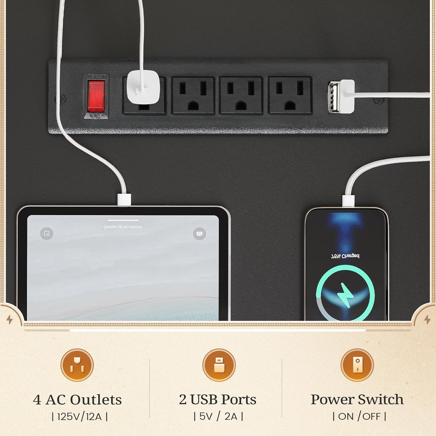- Power Outlets: Equipped with 4 AC outlets and 2 USB ports for convenient device charging without the hassle of unplugging.