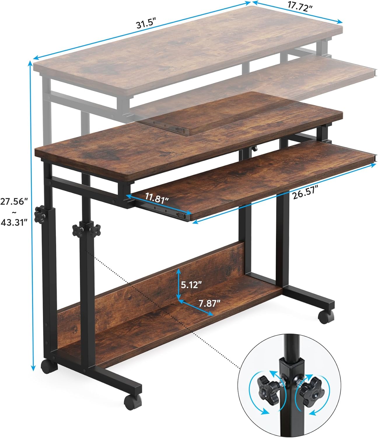 Specification: Tribesigns Portable Desk for Sofa and Bed, Height Adjustable Laptop Table Small Standing Desk Rolling Computer Cart with Keyboard Tray on Wheels for Home Office