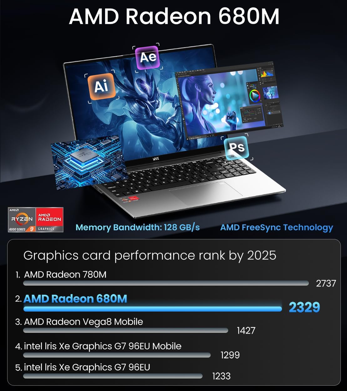 - Integrated Graphics: The AMD Radeon 680M, equivalent to 1050Ti, offers impressive graphics performance suitable for gaming and multimedia.