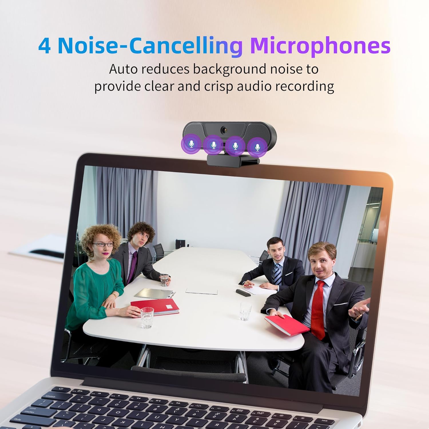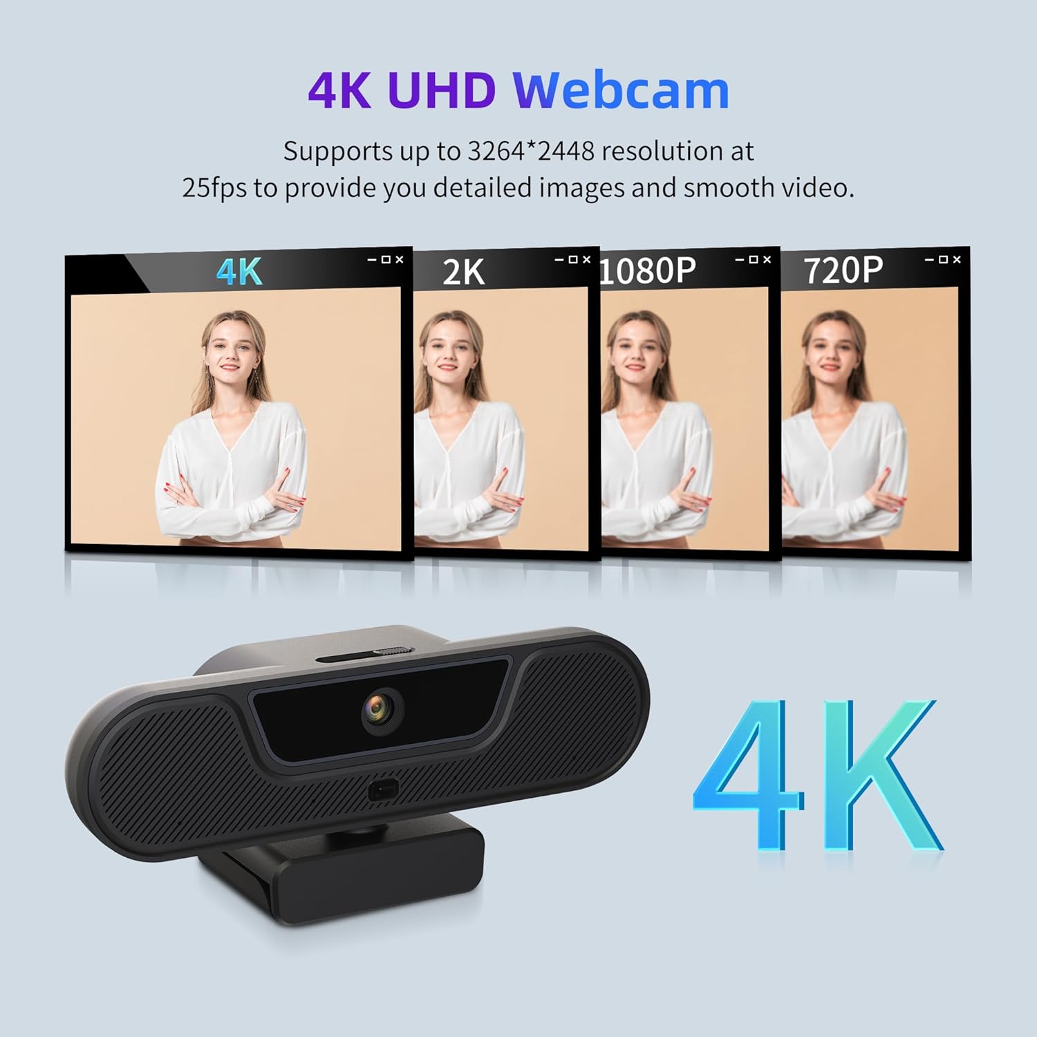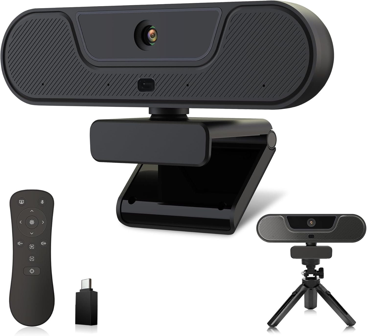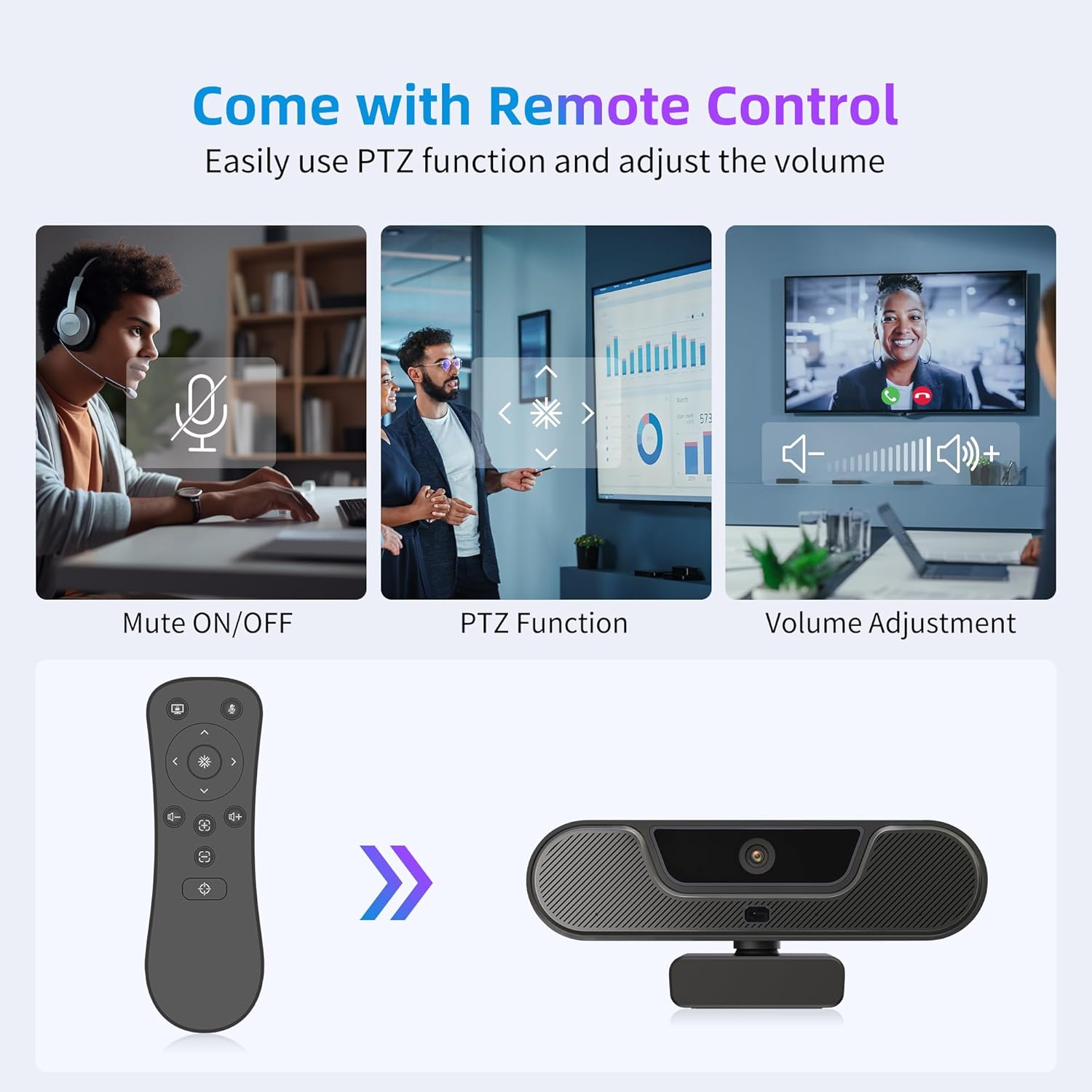 Specification: 4K Webcam, UHD PTZ PC Camera with Speaker and 4 Microphones, Supporting Remote Control, Digital Zoom, Autofocus, Privacy Cover and Tripod, for Video Calls and Conferences and Live Streaming