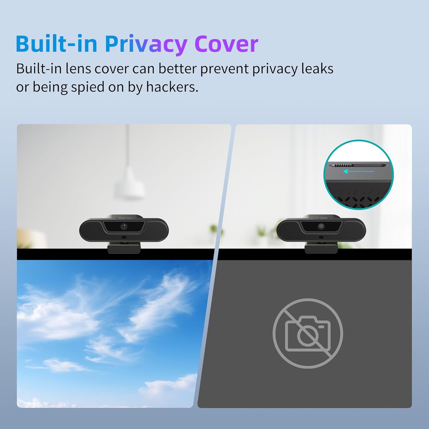 The built-in speakers and four omnidirectional microphones deliver high-quality audio, filtering out background noise effectively.Privacy Protection