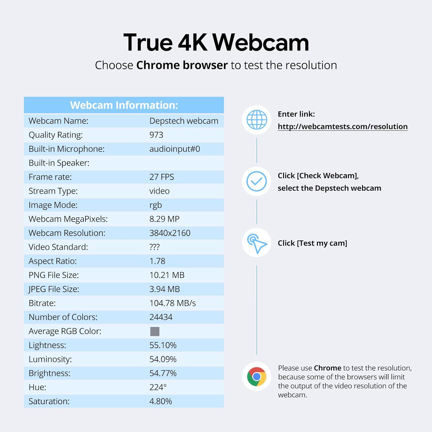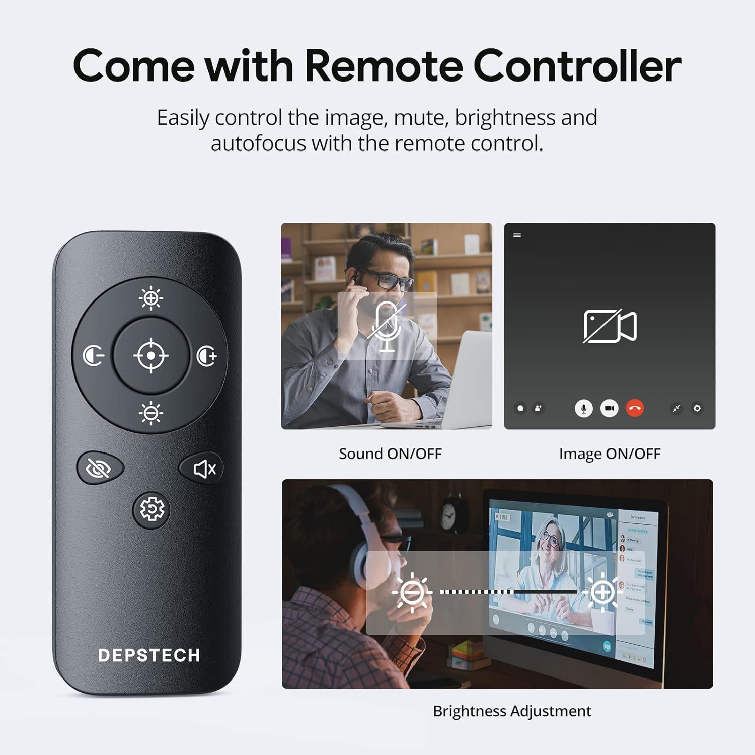 Specification: DEPSTECH 4K Webcam with Remote Control, Ultra HD Webcam with Microphones, Noise-Canceling, AutoFocus, Low-Light Correction, Privacy Cover, Web Camera for PC/Mac/Laptop/Desktop/Zoom/Teams