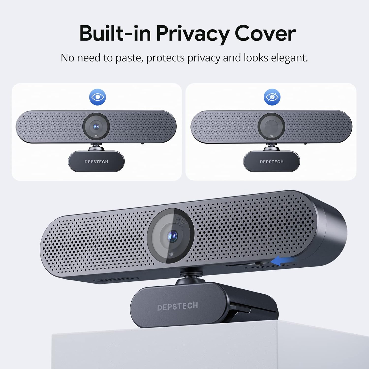 For enhanced security, the DEPSTECH DW50 has a built-in shutter that covers the lens when not in use, ensuring your privacy is protected without additional attachments.