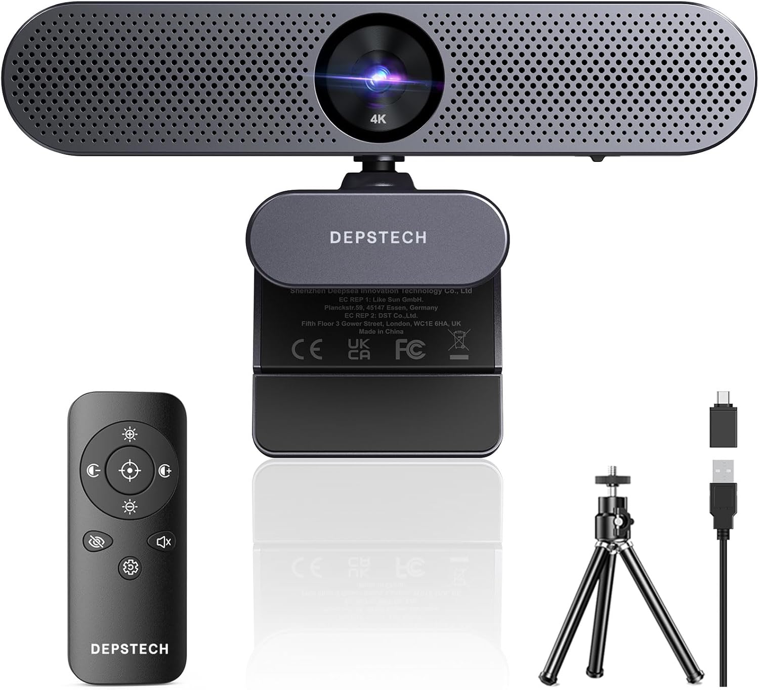 DEPSTECH 4K Webcam with Remote Control, Ultra HD Webcam with Microphones, Noise-Canceling, AutoFocus, Low-Light Correction, Privacy Cover, Web Camera for PC/Mac/Laptop/Desktop/Zoom/Teams