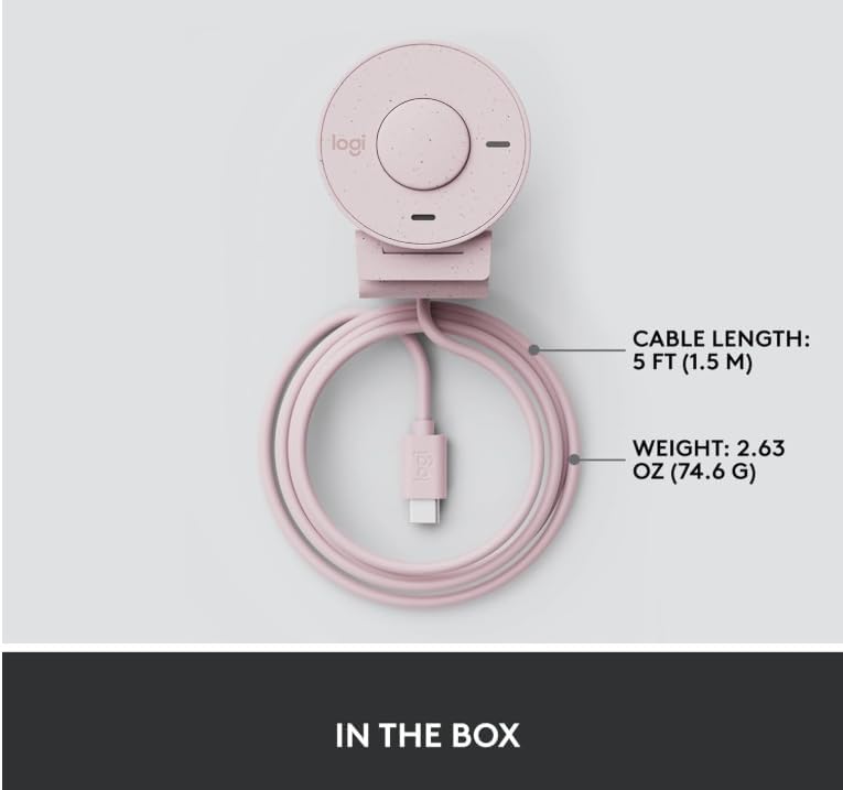 Specification: Logitech Brio 300 Full HD Webcam with Privacy Shutter, Noise Reduction Microphone, USB-C – Auto Light Correction – Rose (Renewed)