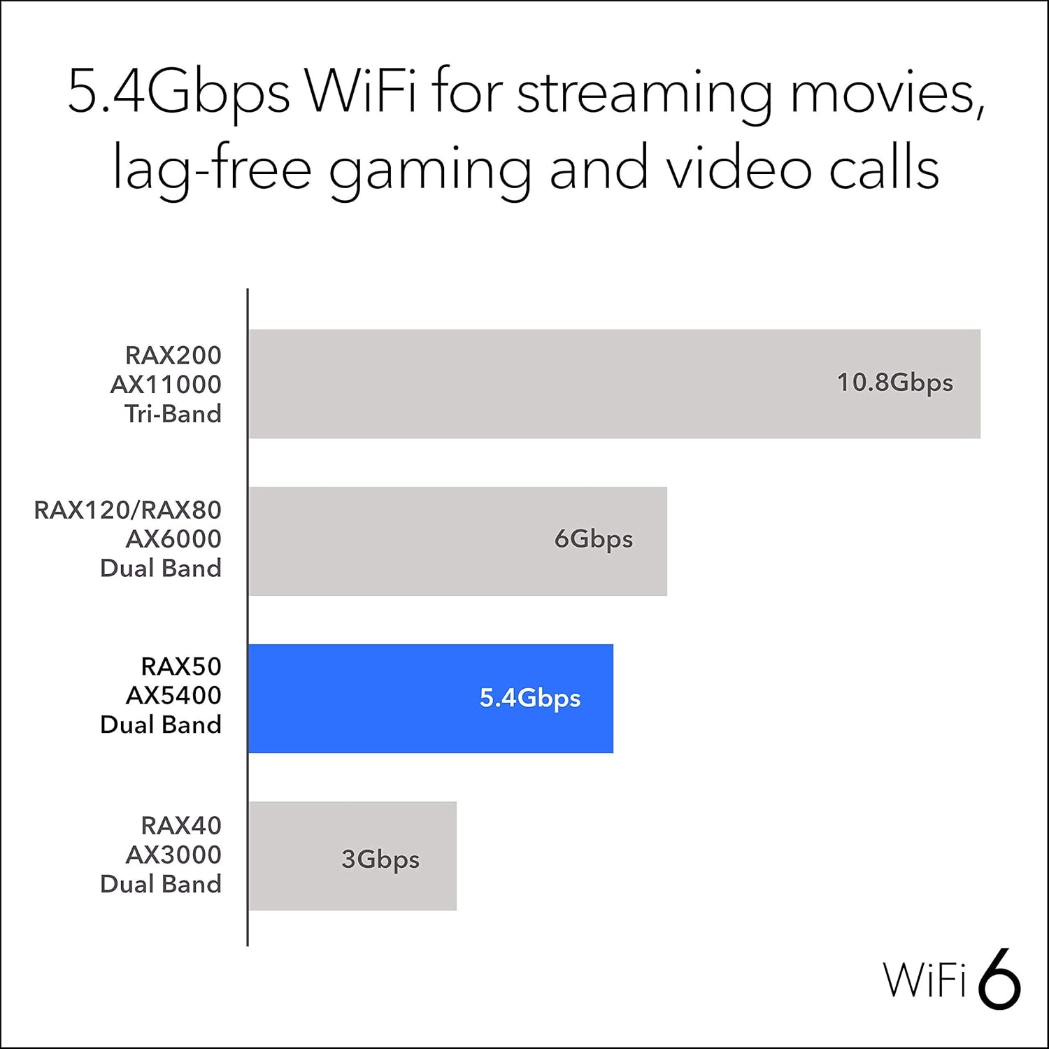 Specification: Netgear NETGEAR RAX50-100NAR Nighthawk 6-Stream AX5400 WiFi 6 Router, Black (Renewed)