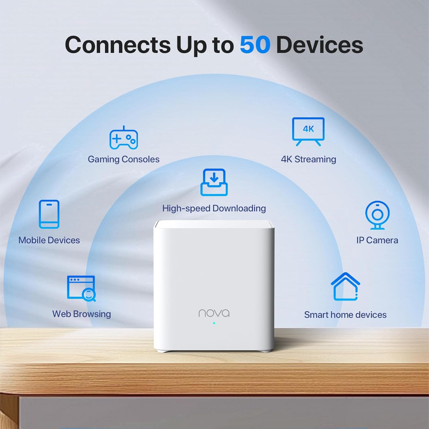 The Tenda Nova Mesh WiFi System MX3-3 is designed to deliver reliable and high-speed internet connectivity throughout your home. With Wi-Fi 6 technology, it offers exceptional performance for multiple devices.